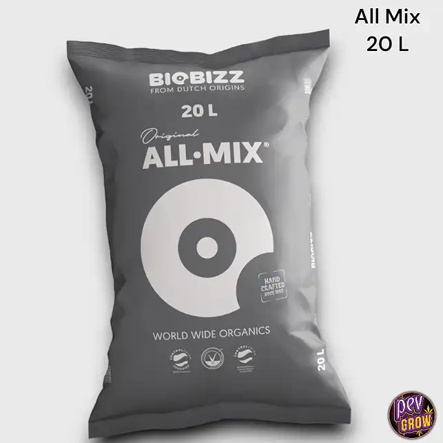 All Mix é a base perfeita para combinar com a gama BioBizz, mas tenha cuidado para não exagerar. Uma combinação clássica é usar Root Juice durante a primeira semana após o transplante para estabelecer as raízes no seu novo lar. Quando a floração começa, pode potenciar a energia do solo com Bio Heaven BioBizz, que ajuda a planta a absorver os minerais já presentes no substrato.