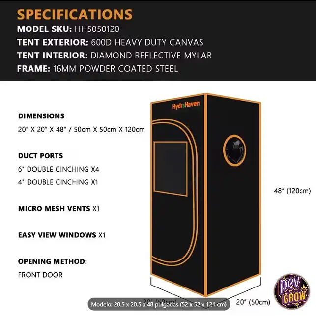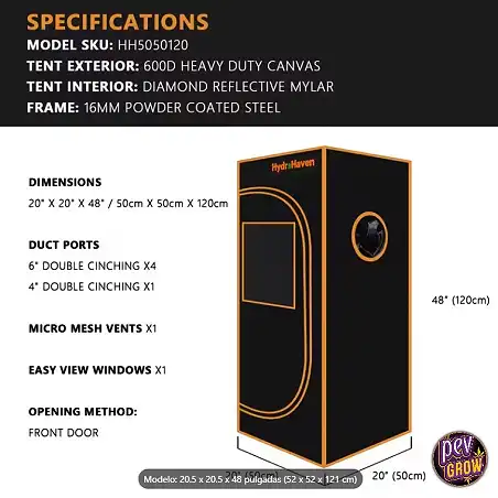 Embora fisicamente possível, as luzes HPS geram muito calor. Para uma tenda desta altura (121 cm), recomendamos vivamente iluminação LED ou CFL para evitar stress térmico nas suas plantas.