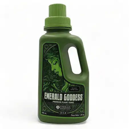 Emerald Goddess da Emerald Harvest é o tónico vegetal definitivo, concebido para transformar o seu jardim num paraíso exuberante e de alto rendimento. Este biocatalisador premium combina o poder da natureza com a precisão científica para aumentar a energia das suas plantas, garantindo um crescimento vigoroso e flores pesadas e resinosas.