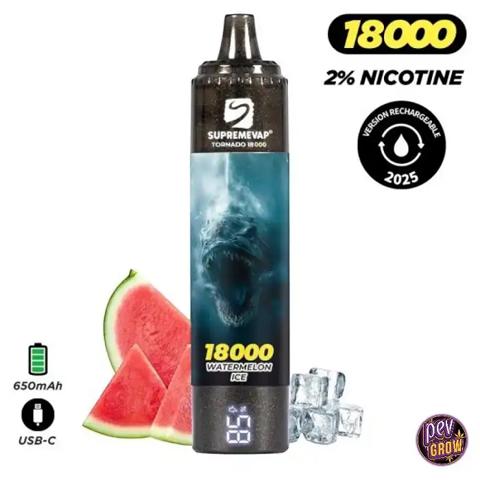 No te pierdas la oportunidad de sumergirte en una experiencia de vapeo inigualable. Hazte con el Puff 18k Supremevap Tornado en Pevgrow y descubre ese increíble sabor a Sandía helada que elevará tu día a día. Además, no olvides investigar nuestros Pods Recargables para llevar tu vapeo a otro nivel.