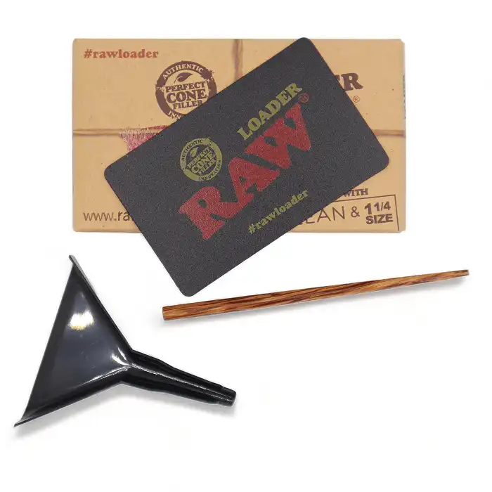 El Raw Loader se utiliza para el rellenado de conos de papel prefabricados, con un método muy sencillo y práctico que cualquier fumador, por novato que sea, será capaz de realizar a la perfección. El rellenador de cogollos Raw Loader, está formado por una tarjeta, con la que recoger la marihuana que ha caído a la bandeja RAW, con un prensador de bambú y un Cone Loader (Adaptador de plástico) que es lo que te permite rellenar tus conos de papel en tiempo récord.