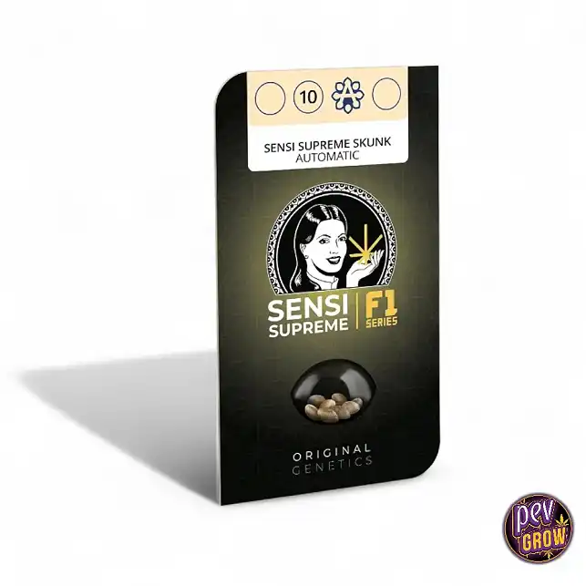 Cu Sensi Supreme Skunk Auto, asta se întâmplă exact. Ca hibrid F1, fiecare sămânță dezvoltă o plantă aproape identică, eliminând loteria genetică. Nici mai multe fenotipuri slabe, nici creșteri neașteptate – doar plante consistente, de înaltă performanță, care înfloreșc cu efort minim.