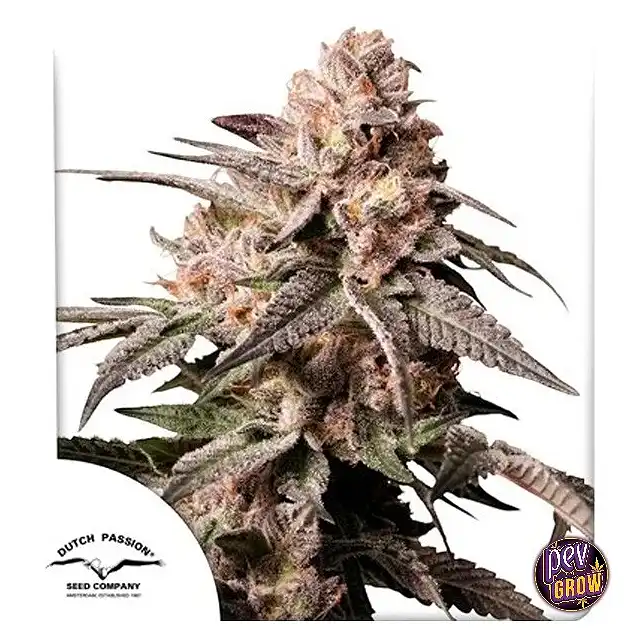 Prezentare rapidă: Fotoperiod feminizat · Dutch Passion · înflorire 8–9 săptămâni · dificultate medie-ridicată · ideal pentru SCROG în medii uscate și controlate.