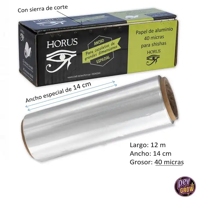 No dejes que un papel de aluminio de baja calidad arruine tu momento de relax. En Pevgrow, entendemos tu pasión por las cachimbas y te ofrecemos solo los mejores productos. El Rollo de Papel de Aluminio Horus de 12 metros es la elección perfecta para asegurar que cada sesión sea una experiencia premium. Añádelo a tu carrito y prepárate para disfrutar de un humo inigualable. ¡Tu cachimba te lo agradecerá!