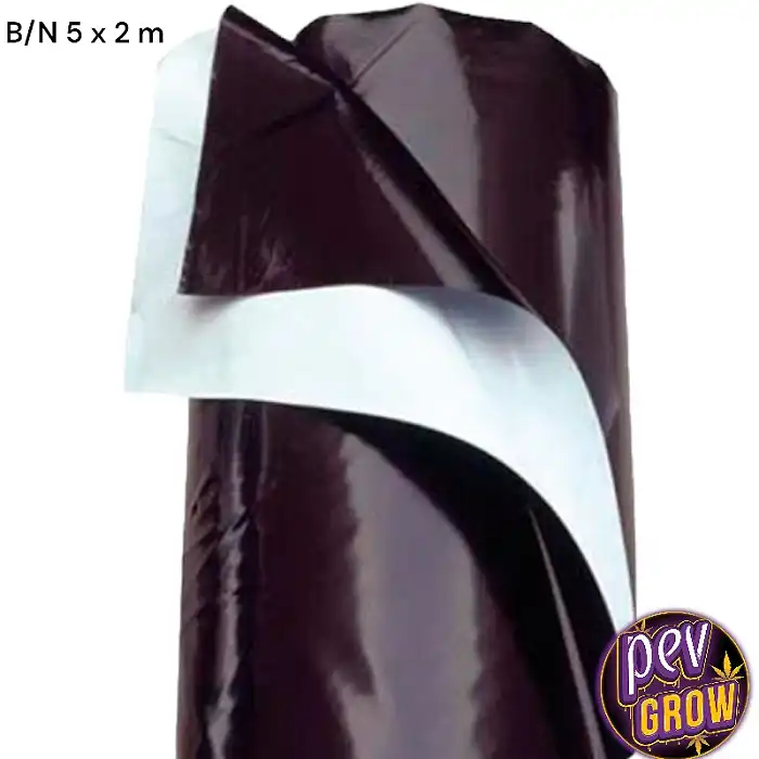 Pevgrow te presenta el Plástico Reflectante Blanco/Negro 5 x 2 Metros, con calibre de 340 galgas y espesor de 85 mu, ideal para reflejar la luz y que no se pierda ni un fotón de la luz del cultivo indoor.
