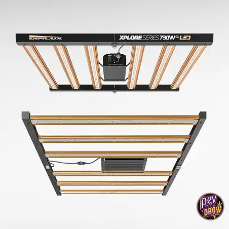 Решение: Dimlux Xplore Series LED 730 Вт решает все эти проблемы благодаря революционной конструкции асимметричных планок. Эта технология направляет свет именно на края и углы, обеспечивая, чтобы периферийные растения получали такую же интенсивность, как и центральные. Плюс, благодаря высокой эффективности 2,7 мкмоль/Дж, вы получаете намного больше света при меньшем нагреве и более низком энергопотреблении, добиваясь равномерного, смолистого и плотного урожая от угла до угла.