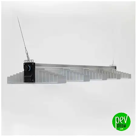 Mide 1318 x 291 x 116 mm y pesa solamente 6,4 kilos, por lo que se puede colocar perfectamente colgado de las barras metálicas de los armarios de cultivo de 1,50 x 1,50 m. Tiene una eficiencia de más de 3 µmol/j, por lo que ofrece unas prestaciones de hasta 870 µmol/s y esto facilita rendimientos de más de 600 gramos por cada luminaria, y para que te hagas una idea sería la producción que se puede conseguir con luces HPS de 600w que consumen el doble.