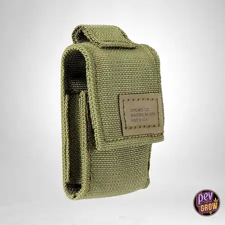 La funda de nailon verde es robusta y está construida con materiales de calidad militar, garantizando una durabilidad que puede resistir el paso del tiempo. Su diseño cuenta con correas resistentes y un cierre de velcro que ha sido probado para soportar más de 20,000 usos, lo que te permite acceder rápidamente a tu encendedor Zippo sin complicaciones.