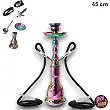 La Shisha Paraíso Multicolor 45 cm destaca por su estética moderna y llamativa. Su cuerpo iridiscente juega con la luz, mostrando una gama de colores que va desde el verde hasta el rosa y el azul. Su manguera trenzada en negro ofrece un contraste elegante, haciendo de esta shisha una verdadera pieza de decoración.