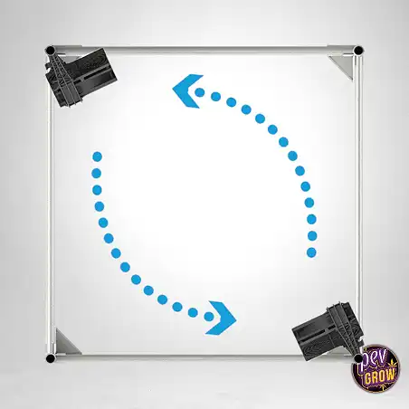 Rešitev: Paket Monkey Fan Mf2x120 to reši takoj. Z dvema enotama lahko ustvarite popoln zračni tok (ena zgoraj, ena spodaj), ki odpravi mrtve cone. Njuna posebna konstrukcija za cevi šotora omogoča intuitivno in varno namestitev ter pretvori kaos kabrov in grdimih ventilatorjev v čisten, profesionalen in učinkovit sistem.