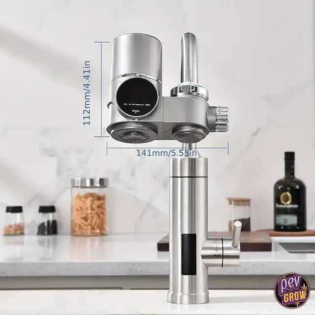 Denna anordning är designad för enkelhet och funktionalitet. Det är en kompakt enhet som skruvas direkt på din kran och använder aktiverat kols adsorptionskraft för att fånga föroreningar medan vattnet strömmar igenom.