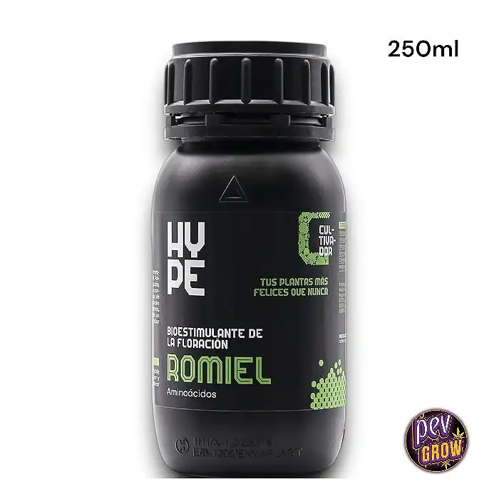 Romiel av The Hype Company är den ultimata blomstervätskan som förvandlar "genomsnittliga" skördar till gourmetskördar, och maximerar produktionen av socker, harva och täthet i dina buds precis när de behöver det mest.