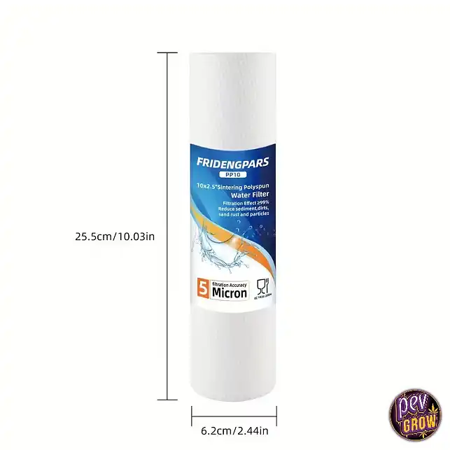 Detta är en standard 10-tumspatron (ca 25,5 cm x 6,2 cm). Den passar stora delar av vanliga underdiskar RO-system och trädgårdens filterhöljen.