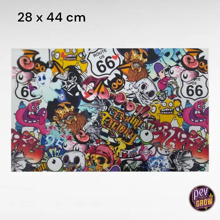 Este tapete destaca por su diseño psicodélico lleno de colores y formas que capturan la mirada. Está disponible en dos tamaños prácticos: 28 x 20 cm y 28 x 44 cm, permitiendo que elijas el que mejor se adapte a tus necesidades.