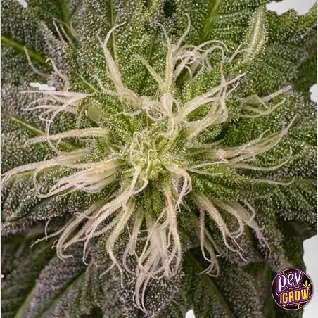 Imagina unas plantas compactas y vigorosas, que recompensan tu esfuerzo con cogollos densos y recubiertos de un brillo resinoso. Sus hojas anchas y de un verde vívido y sus cogollos que despliegan tonos oscuros resaltan su belleza. Al ser predominantemente índica, su tamaño contenido la hace perfecta para esos espacios interiores donde cada centímetro cuenta.