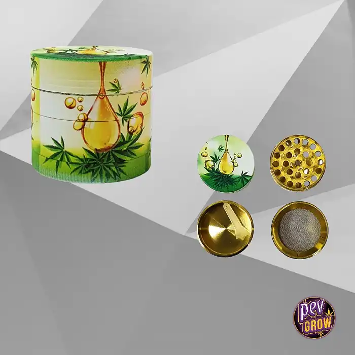 En Pevgrow, te presentamos el Grinder Metal Hoja Marihuana 40mm, un accesorio esencial en la colección de head shop para todo amante del cannabis. Con su diseño de hojas de cannabis impreso en 360º, este grinder no solo es funcional, sino también una declaración de estilo. Acompáñanos para descubrir por qué este producto se ha convertido en un favorito entre los aficionados al cannabis.