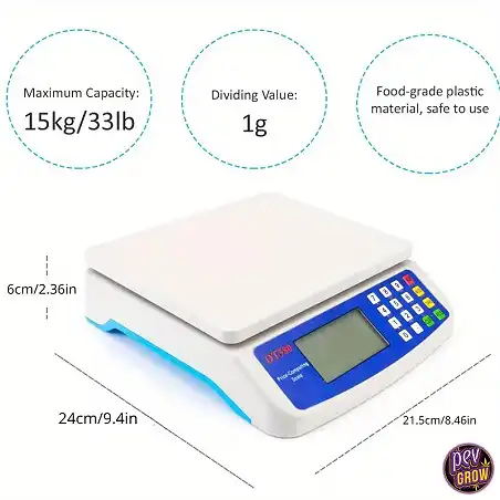 30kg/1g Hassas Dijital Terazi, cep terazilerinin yetersiz kaldığı durumlarda her ciddi yetiştirici için güçlü bir ortaktır. Bu cihaz, endüstriyel tartım ile hortikültürel hassasiyet arasında köprü kurmak üzere tasarlanmıştır ve toplu besin çözeltisi hazırlamaktan tüm hasadınızı tek seferde tartmaya kadar her şeyi kolaylaştırır. Böylece üretim verileriniz üzerinde tam kontrol sahibi olursunuz.