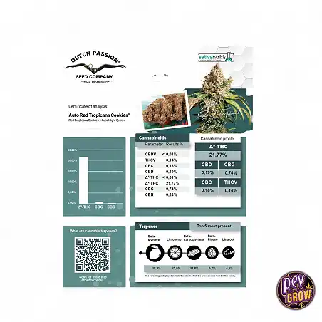 Bu hayal kırıklığı burada sona eriyor. Auto Red Tropicana Cookies, seçkin soyundan gelen bu çeşitle birlikte yoğun, tricoma kaplı çiçekler, güçlü meyveli-kush aroması, tutarlı mor fenotipler ve dengeli ama güçlü bir etki sunar: Red Tropicana Cookies'un ödüllü Auto Night Queen ile çaprazlanmasıyla geliştirilmiştir. Gerçekten fotoperiyot gibi görünen ve içilen bir otomatik çiçeklenendir.
