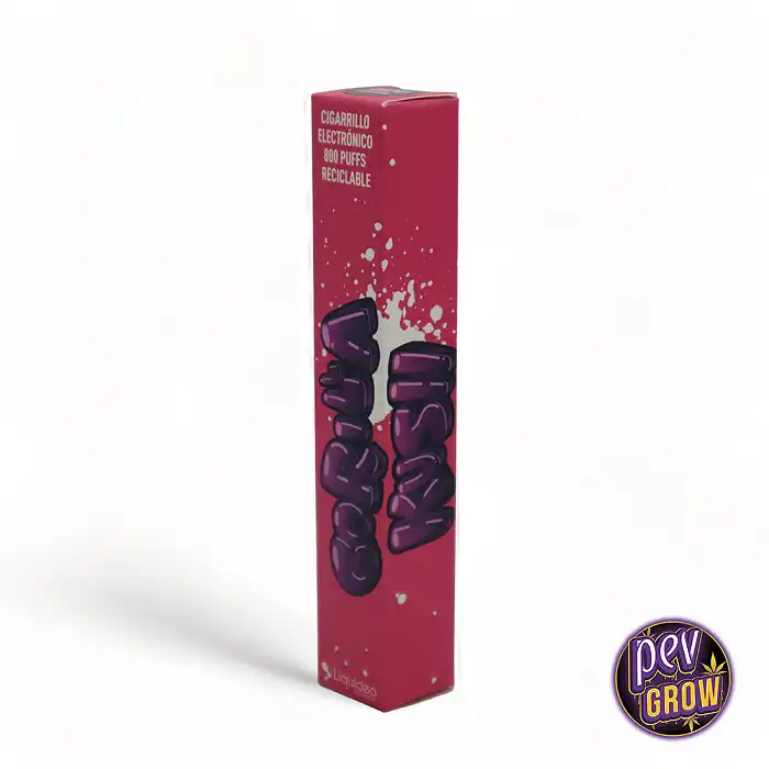 Vaporizador desechable con 500 mg de CBD, sabor Gorilla Kush, sin nicotina y con menos de 0,2% de THC. Ofrece hasta 800 caladas de vapor con matices cítricos, terrosos y especiados. Fácil de usar y 100% medicinal.